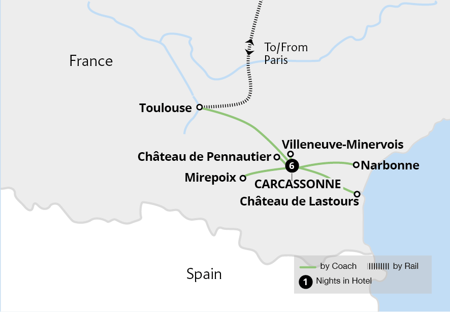 Embark on an indulgent French holiday based in a riverside hotel in stunning Carcassonne, discovering the myths of hilltop Cathar castles and soaking up the region's renowned flavours. Stroll through Carcassonne's magical walled fortress on a guided tour of the city's medieval delights and uncover the mysterious history of the four hillside...