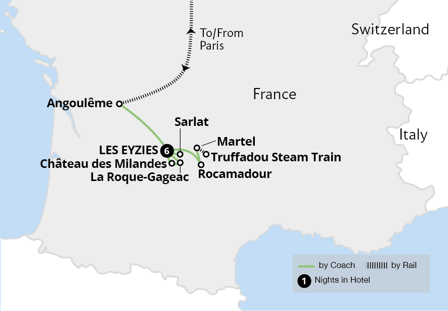 Famed for its prehistoric cave drawings, Les Eyzies provides the perfect location from which to explore the beautiful Dordogne, a region renowned for picturesque villages, ancient history and excellent cuisine. Enjoy a relaxing cruise along the Dordogne from the honey-hued village of La Roque-Gageac and discover the spectacular cliff-side ...