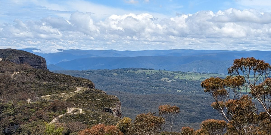Sunday was a dream. We drove north out of Sydney on a guided coach tour of the Blue Mountains. Our knowledgeable guide shared stories, based on history and myth, as we travelled uphill into the blueish eucalyptus haze of this lush and hilly area. We learned how to tell the difference between a kangaroo and a wallaby - wallabies are under a metre high, kangaroos over - we were reminded that Australia's Aboriginals, who lived in small tribes of 20 to 40 people, are the oldest continuing culture in the world. Nomadic 'hunter gatherers', the people who lived in the Sydney region would have survived on fish and small marine animals. The original custodians of the land didn't regard themselves as 'owners', unlike the white settlers who mapped and fenced off areas, naming favourable locations after themselves - naturally!