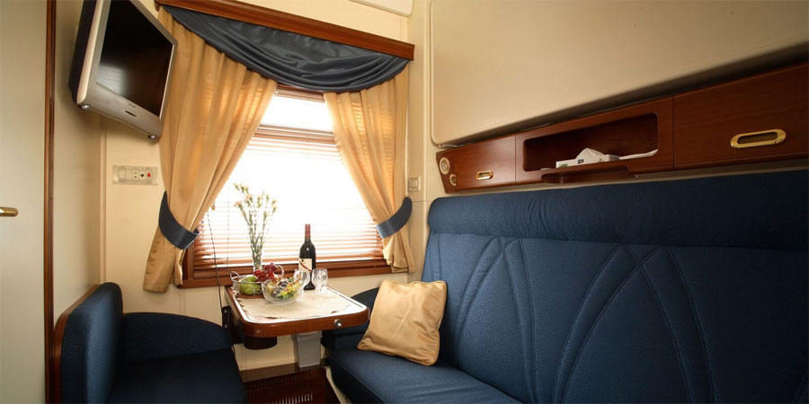 Besides personal climate control, a DVD/CD player, LCD screen, and safe are provided along with generous wardrobe space and a large picture window. Tea, coffee, soft drinks and mineral water are available at all times.